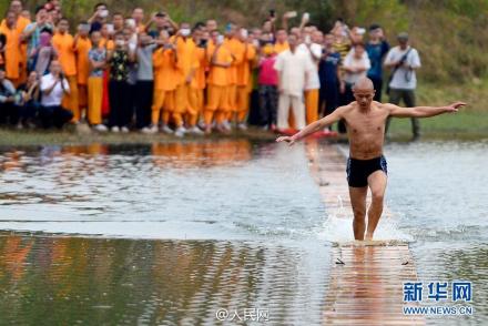 原标题: 少林武僧展示水上漂轻功 “漂”出达118米(图)