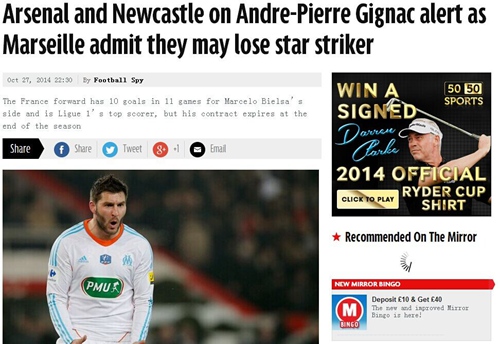 吉尼亚克目前效力于法甲劲旅马赛,前11轮他打入10球,力压卡瓦尼、伊布等名将高居射手榜首,如今阿森纳与纽卡斯尔都在打他的主意。吉尼亚克的身价指定不高,因为他目前这份合同将于本赛季结束后到期,俱乐部方面没能说服他续约,这意味着,如果明年1月不将其出售,明夏他就会成为自由球员,这对阿森纳与纽卡斯尔来说是利好。