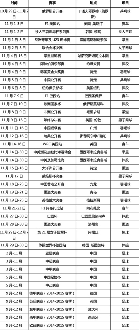 2014赛季重要赛事11月赛历 举重世锦赛再掀波澜