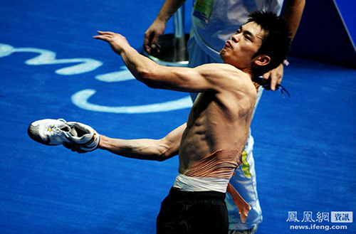 很多运动员都喜欢夺冠后把自己的球衣脱下来扔给观众,林丹、刘翔、张继科等等都曾这么干过。在08年北京奥运会上,兴奋加冕夺冠的林丹把自己使用的球拍和鞋子扔给了现场的观众。2011年广州亚运会上,林丹击败李宗伟实现大满贯后,再次脱掉自己的上衣,并将一双鞋都扔到了观众席上。