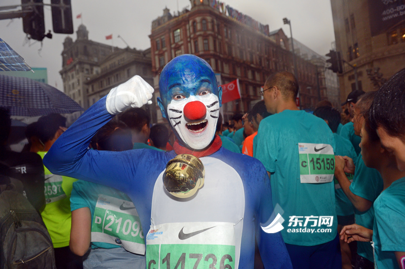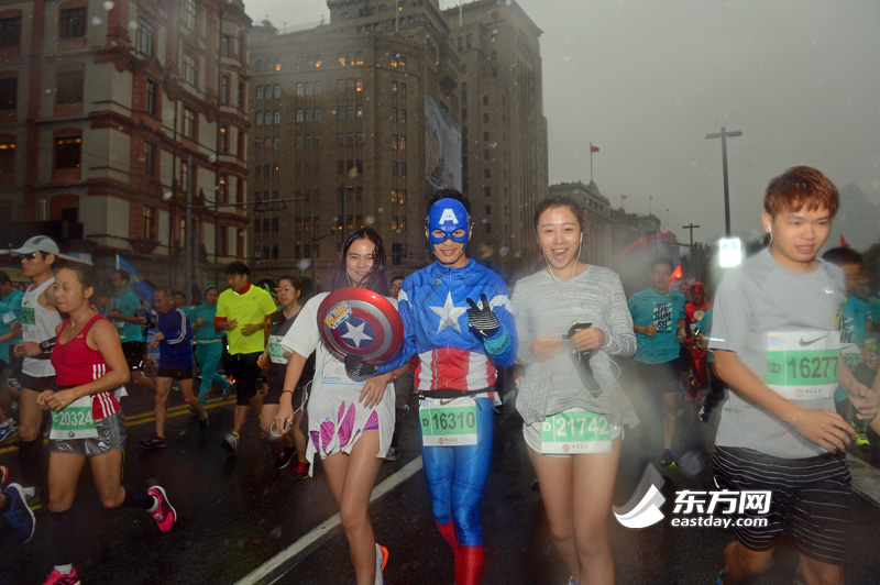 11月2日清晨7点,2014年上海国际马拉松赛鸣枪,3万5千人雨中起跑。起跑时雨势稍大,大概过了10多分钟才停下。突然的降雨并未影响跑 友的步伐,不少跑友表示,虽然刚开始有点冷,但后面感觉很好,今天的天气特别适合跑步。也有跑友调侃称“没有雨的上马就不叫上马了”。