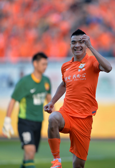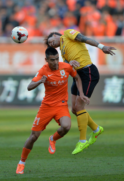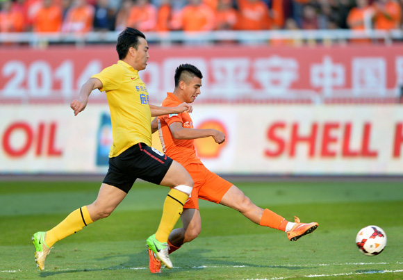 北京时间11月2日15点35分,2014赛季中超联赛最后一轮的一场焦点战役中,山东鲁能坐镇主场迎战卫冕冠军广州恒大。上半场比赛,鲁能凭借刘彬彬在第11分钟的单刀球取得领先。第43分钟,埃尔克森禁区外劲射扳平比分。最终,全场比赛结束时,山东鲁能和广州恒大1-1握手言和。广州恒大连续第四年获得中超冠军