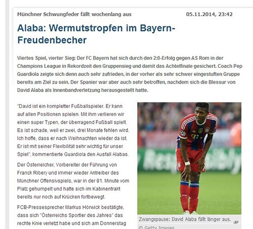 但不爱轮换的瓜迪奥拉还是让阿拉巴难逃伤病的侵袭。对阵罗马的比赛,连续高强度征战的阿拉巴在比赛下半场感到不适,第80分钟被罗德替换下场。赛后,拜仁官网第一时间公布了阿拉巴受伤的消息。阿拉巴一伤,最苦恼的人当属瓜迪奥拉。西班牙教头一直不掩饰对奥地利新星的喜爱,“大卫(阿拉巴)是一位全能的球员,他几乎可以踢球场上的每一个位置。现在他受伤了,我们失去了一位极其优秀的球员。希望他不用缺阵太久,我不想看到他缺阵两三个月的时间,我希望在圣诞节后他就能回来。缺少大卫,我们在比赛中阵型的变化性也会受到很大影响。这真的是一个非常坏的消息。”