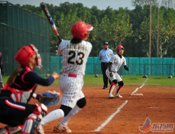 国际女子垒球邀请赛比赛现场。