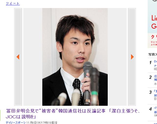 因为在仁川亚运会游泳场馆偷窃韩国记者相机,而被韩国检察厅起诉、处以罚金的日本游泳选手富田尚弥,当天中午时分在名古屋市举行记者会,澄清了事情的原委,声泪俱下地哭诉自己是被冤枉的,“当时因为自己心里太脆弱而认罪”。