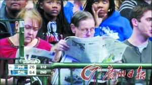 原标题: 76人惨负小牛 两位老年球迷看报纸打发时间(图)