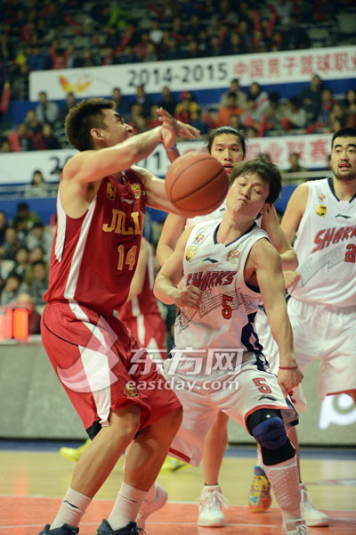 上海队因为与外援韦斯特解约,他们只剩下比斯利一人可用。吉林队开场就反客为主,他们以10-5开局。葛暘和曾文鼎分别进攻得手,上海队打出7-0的反击波反超。吉林队的两位外援发挥作用,琼斯命中两个三分球,一人独得8分,马丹里也上篮得手,首节还有1分55秒时吉林队以23-17领先6分。琼斯下场休息后吉林队的进攻威胁性大减,上海队趁机反扑,任鹏鹏突破得分,范成林右翼命中三分,上海队在首节结束时以24-26落后2分。