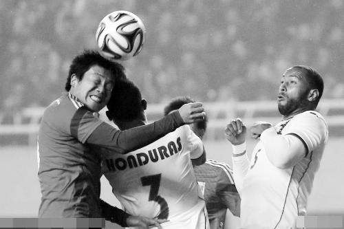 昨夜,西安体育中心,尽管3万球迷热情如火,中国队还是交了一张白卷,被洪都拉斯0∶0逼平。比赛中,面对四天前被日本6∶0大胜的对手,佩兰排出的新阵毫无新意,反倒是终场前替补上场的几位老将威胁十足。从比分上,也不难看出国足和日本队的差距。