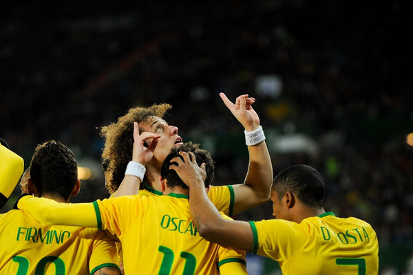 第64分钟,奥斯卡左侧角球传中,大卫-路易斯的头球攻门弹地入网,巴西1比0领先奥地利。