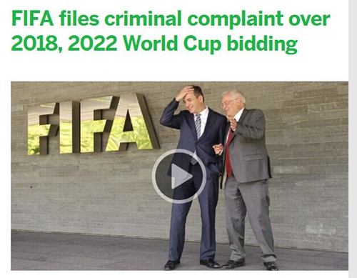 据ESPN体育最新消息,国际足联现已收到针对2018年与2022年世界杯申办过程存在不当行为的指控,这两届世界杯分别由俄罗斯与卡塔尔举办。