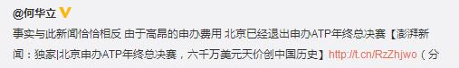 原标题:北京已经退出申办ATP年终总决赛因为费用昂贵