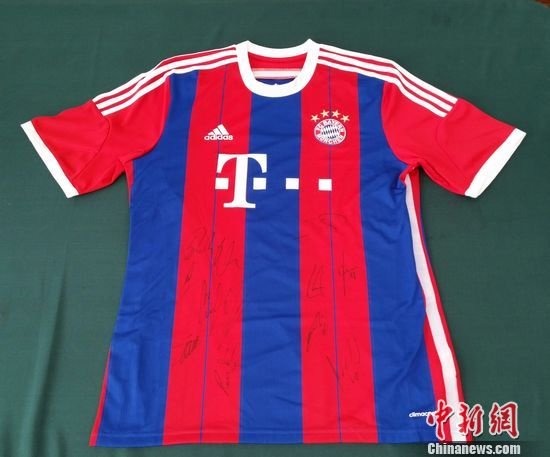 图片说明:全体球员签名的拜仁慕尼黑队8号球衣