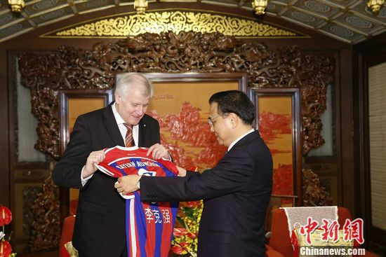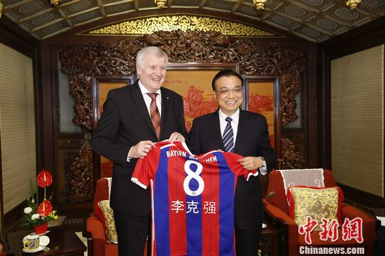李克强会见德国客人获赠球衣 拜仁或助中国培训球员