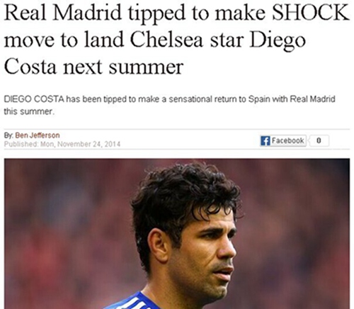 北京时间11月25日,根据英国《每日快报》消息,皇马将挖角的触手伸向了切尔西,明年夏天,银河战舰将挖角蓝军阵中锋线王牌迭戈-科斯塔,另外有消息称,皇马已经击败巴萨,他们将签下马洛卡新星阿森西奥,另外利物浦阵中的一名绝世天才也得到了皇马方面的觊觎。