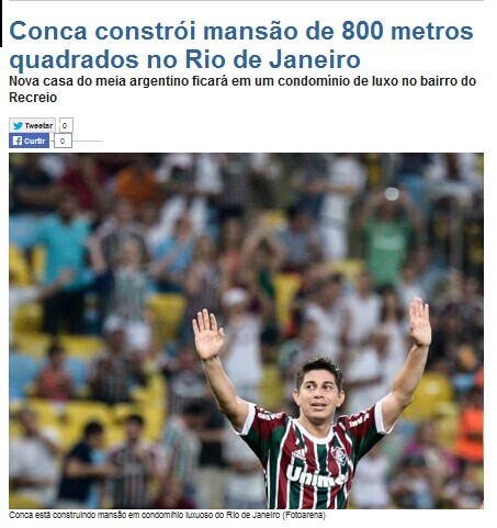 近期的孔卡,在球场上可谓颇为失意。在近5场比赛中,其所率领的弗鲁米嫩塞仅获2场胜利,原本有望冲击解放者杯席位的FLU,目前离排名第四的巴西国际5分,在还剩2轮联赛就将结束的情况下,三色军团基本已失去进军前四的希望。受此拖累,孔卡的状态在近期有一个比较明显的跌落,在最新出炉的阿曼多·诺盖拉奖的最佳球员评选中,孔卡已从最高时的第二位跌至第九位。虽说阿根廷人在球场颇为失意,但在场外,斥巨资购置800平米豪宅的孔卡,却实实在在的风光了一把。