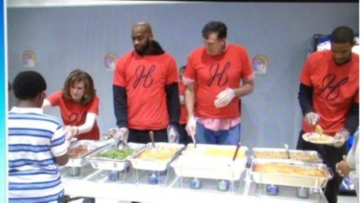 新浪体育讯北京时间11月28日,今天是美国的感恩节,由于没有安排任何NBA比赛,球员们获得了难得的休息时间。然而休斯顿火箭队当家球星詹姆斯-哈登在这个节日里却没有忘记需要关怀的人们。今天,他和母亲特地为100名需要帮助的人士送上感恩节的食物,他的队友们和教练也都纷纷前来支持。