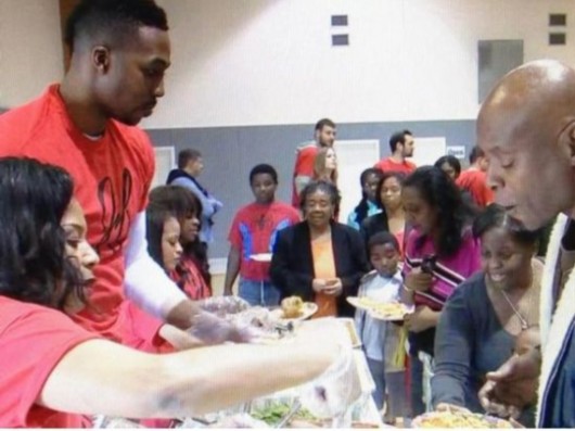 感恩节哈登请100个人吃饭 客串服务员帮盛饭