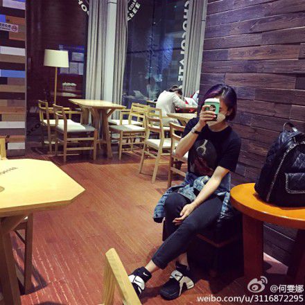 今天下午,中国蹦床奥运冠军何雯娜在其个人微博上晒出一组靓照。图中何雯娜穿着时尚,将天蓝色外套系在腰间,一头紫色亮发着实吸引眼球。何雯娜还捧起一杯咖啡细细品尝,享受轻松一刻。她自己配文字写道,“好喜欢这一组照片。”