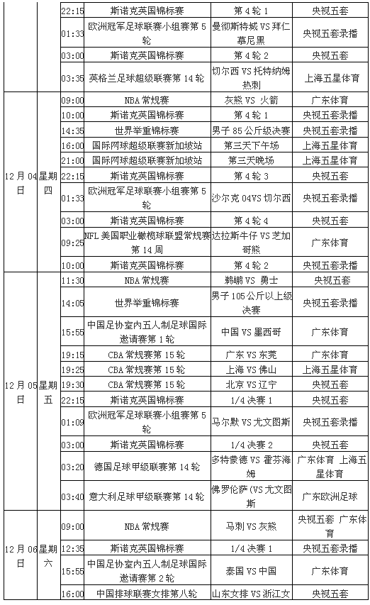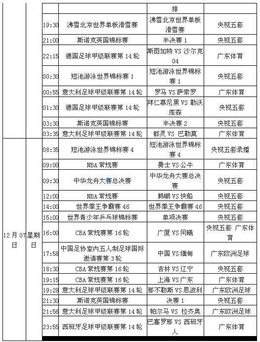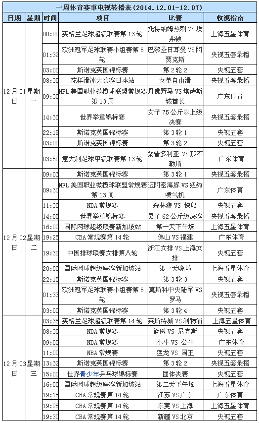 一周电视直播表