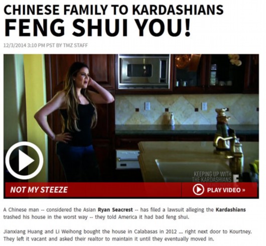 据美国媒体报道,中国名嘴黄健翔在美国提起维权诉讼,因为真人秀明星卡戴珊一家把他的房子糟蹋得一无是处,说这里风水不好。