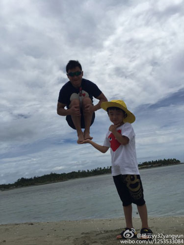 杨云晒全家度假照 杨阳洋单手“托起”杨威[图]