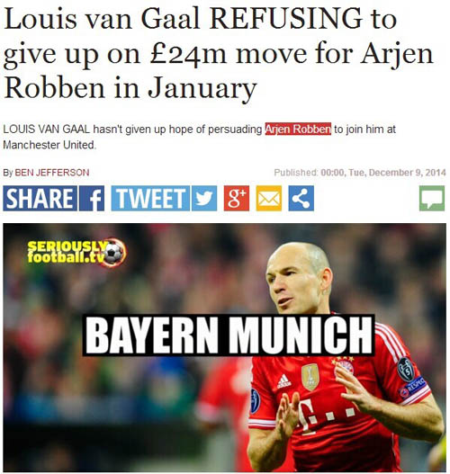 今年夏天,范加尔拿下曼联教鞭后列出一份收购列单,拜仁慕尼黑俱乐部看了后吓了一跳,克罗斯、穆勒、罗本、施魏因斯泰格、拉姆……等主力全部榜上有名,当然德甲班霸也不是吃素的,除了克罗斯执意走人最后加盟皇马,其余球员全部留在安联,曼联硬是没挖走拜仁慕尼黑一名球员。英国媒体《每日快报》最新消息爆料,拜仁慕尼黑躲过了曼联的夏季“袭击”,不意味着冬窗就安全,范加尔没有放弃追逐自己感兴趣的球员,明年1月份将卷土重来,再度尝试挖角拜仁慕尼黑,剑指小飞侠罗本。