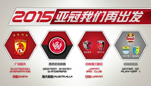 2014年12月11日,2015亚冠分组抽签揭晓,广州恒大与西悉尼流浪者,鹿岛鹿角或浦和红钻,以及一支资格赛球队同组,这支资格赛球队很有可能是韩国劲旅首尔FC,而如果日本J联赛冠军大阪钢巴夺得天皇杯冠军,浦和红钻则将进入恒大所在小组。如此一来,恒大这个小组极有可能出现每支球队主色调均为红色的奇景。