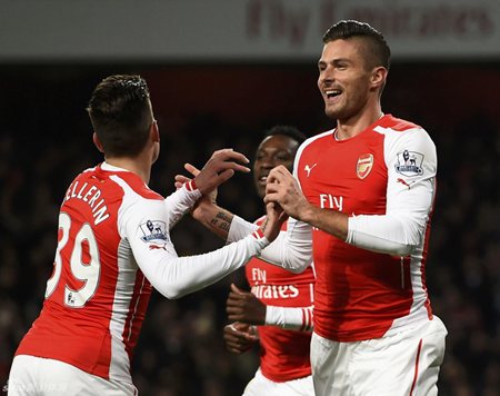 北京时间12月14日01:30(英国当地时间13日17:30),2014/15赛季英格兰足球超级联赛第16轮一场焦点战在酋长球场展开角逐,阿森纳主场4比1大胜纽卡斯尔,吉鲁和卡索拉双双梅开二度,桑切斯贡献两次助攻。