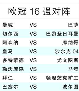 欧冠16强抽签揭晓 曼城又遇巴萨温格心想事成