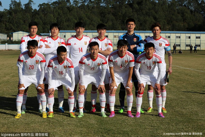 国足(4-5-1):1-曾诚(46’25-王大雷);2-任航、5-张琳芃(46’3-梅方)、4-姜志鹏、14-吉翔(70’11-蒿俊闵);15-吴曦(70’13-刘建业)、7-蔡慧康(78’23-刘彬彬) 、20-于汉超(70’18-郜林)、21-于海(40’22-杨超声)、16-孙可(78’9-杨旭);19-武磊(70’17-张呈栋)