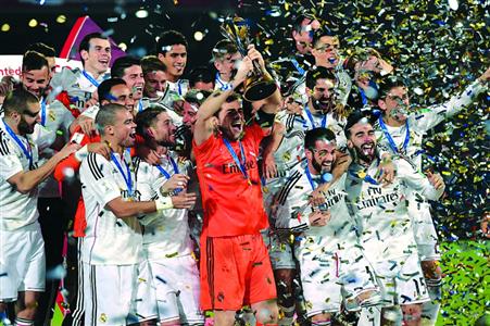 图片说明:在马拉喀什举行的第11届世俱杯决赛中,皇家马德里队以2比0击败阿根廷圣洛伦索队,荣获冠军。