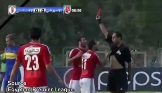 今年10月,英国媒体披露了一则埃及联赛趣闻,一名叫做苏莱曼的球员在被裁判出示红牌后,头脑一热直接将裁判的上衣撩起。主裁感觉自己被羞辱了,于是将这些信息写进了裁判报告,并且上交给了足协。最终,苏莱曼被禁赛4场,罚款440英镑。