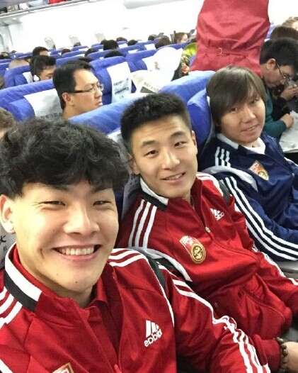 在起飞之前,国足门将王大雷和前锋武磊玩起了自拍,王大雷将这张图片放到了自己的微博中,并且注上文字:拜拜。这张图片中,王大雷咧嘴大笑,笑得十分开心。他旁边的武磊则面露微笑,本土第一射手的笑容和王大雷比起来可谓十分收敛,而最右边的国足体能教练李铁也配合着露出笑脸,这2人的笑容和王大雷比起来都十分“低调”。