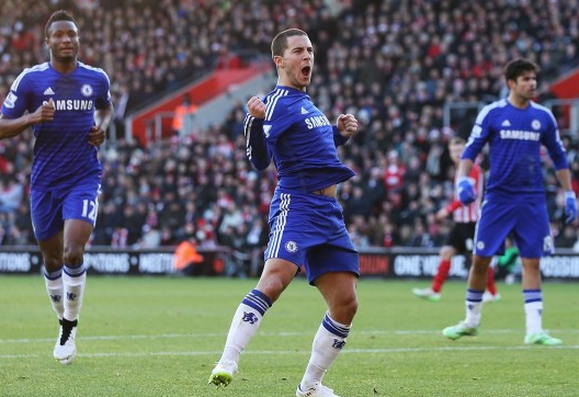 北京时间12月28日晚间22点05(当地时间28日下午14点05),2014-15赛季英超第19轮一场焦点战在圣玛丽球场展开争夺,切尔西客场挑战南安普敦。上半场马内为南安普敦首开纪录,阿扎尔凭借个人能力扳平,切尔西1-1平圣徒;下半场双方均无建树,切尔西1-1战平南安普敦,获得本赛季英超半程冠军。