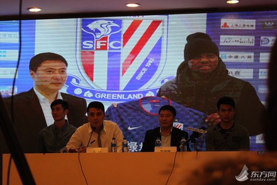 从申花董事长吴晓晖手中接过新球衣,吕征的手有些抖动。他说:自己心情既紧张,也很激动,绿地申花在中超是一支豪门俱乐部,加入后希望能帮助球队越踢越好。