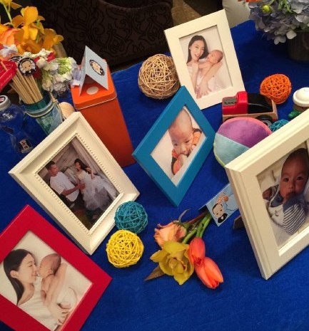 阿联摆放了众多儿子的照片,并带了儿子来到现场。