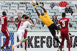 图片说明:阿联酋激战卡塔尔 卡塔尔防线忙又乱