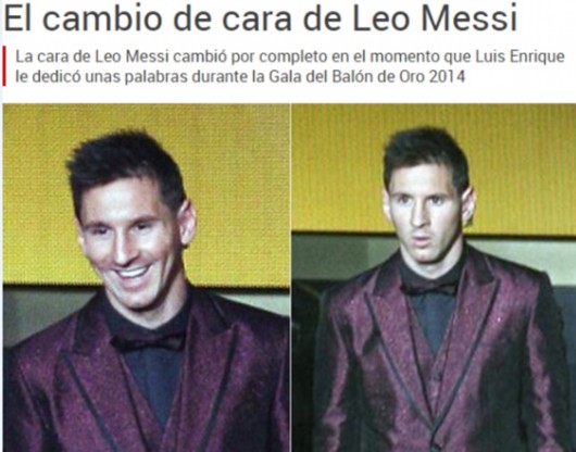 图中就是梅西在看艾马尔和恩里克的视频时不同的表情。