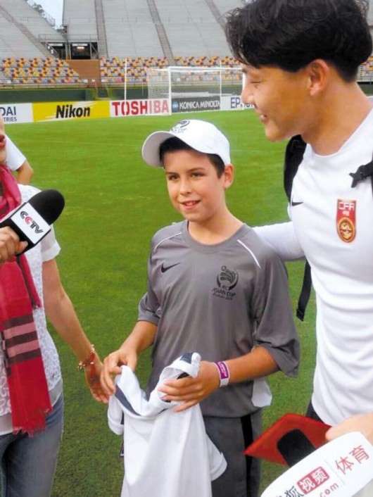 国足首战取胜沙特,“指点”王大雷扑出对方点球的小球童斯蒂芬·怀特功不可没。昨天晚上,斯蒂芬·怀特在母亲的带领下,受邀来到中国队训练场,成为全场最耀眼的明星。