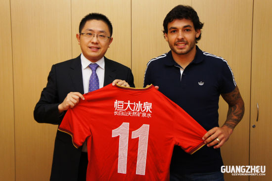 图片说明:广州恒大官方宣布巴西现役国脚高拉特加盟