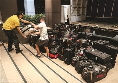 行李晚到国足取消训练 酒店大堂里轻松手机刷屏