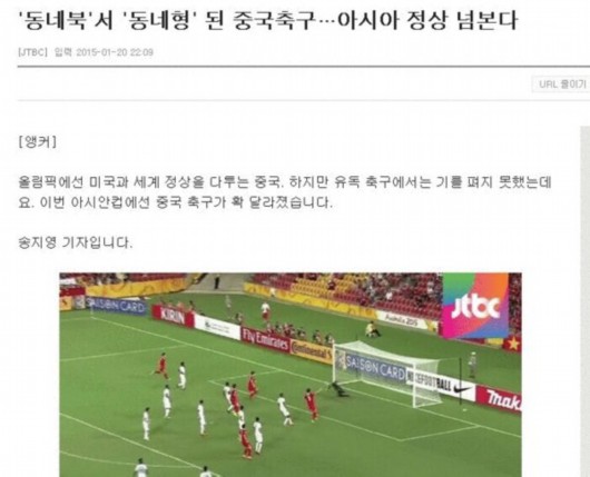 韩国媒体《jtbc》20日撰文指出,在夏季奥运会上与美国争夺世界头名的中国体育实力不断强大,但在足球领域,中国足球一直不被人看好。但是,此次亚洲杯上中国队的表现则完全不同,让人眼前一亮。