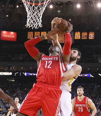 火箭首发阵容:莫泰尤纳斯、阿里扎、霍华德、贝弗利、哈登