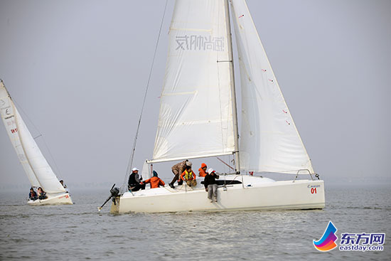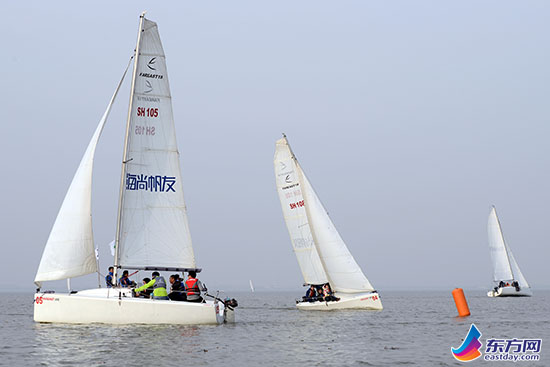 东方网记者展翔2015年1月25日报道,青浦淀山湖畔迎来上百名帆友,竞逐2015迎新“羊”帆接力追逐赛。此次赛事采用创新又有趣的接力赛赛制,加上淀山湖极佳的风力条件,帆友们驾驶珐伊帆船享受了三个小时的刺激竞赛,并因接力赛制积极互动合作,现场弥漫着浓郁的帆船运动氛围。