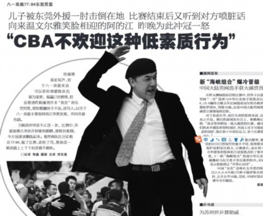 本报记者当时面对阿的江,看到发生的一幕吓了一跳,采访CBA八年,阿的江如此激动愤慨还是第一次见到。到底是怎么回事?有球迷猜测,“是不是因为比赛结束前布朗挥肘将阿的江爱子阿尔斯兰摔翻在地,阿的江爱子心切欲赛后‘报仇’?”