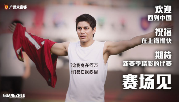 面对昔日猛将重归中超,广州恒大官微也发表微博,表明了欢迎的态度:“欢迎回到中国,祝福(他)在上海快乐,期待新赛季精彩的比,赛场见!”