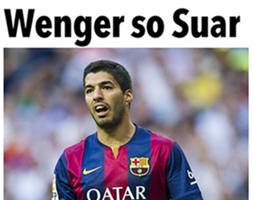 2014年夏天,巴萨成为苏亚雷斯的新东家,转会费达到了让利物浦非常满意的8100万欧元,而苏亚雷斯加盟巴萨以来,截止目前在西甲与欧冠出场15次,打入4球完成8次助攻,总体表现尚可,但也远不及利物浦生涯中后期。温格认为,既然苏亚雷斯在加泰罗尼亚境况一般,今夏完全可以尝试出价求购他。