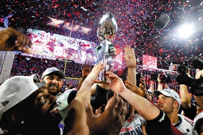 图片说明:捧杯爱国者队第4次夺取超级碗总冠军。