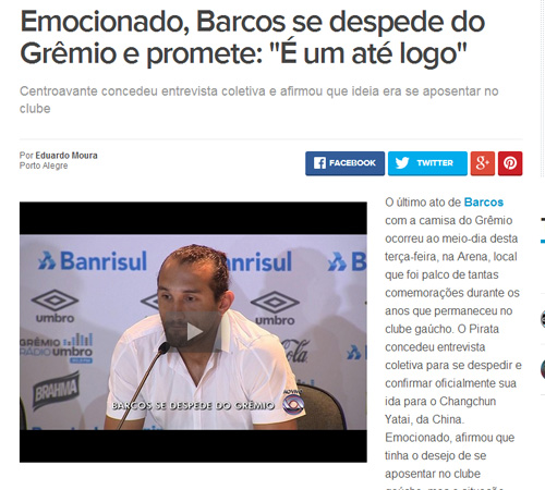 如预期所报道的那样,格雷米奥俱乐部在本周二召开了新闻发布会。在格雷米奥执行主管鲁伊-科斯塔的陪同下,巴尔克斯身穿一身白色T恤出席发布会。面对媒体的长枪短炮,阿根廷人略带神伤地发表了自己的离队宣言,“今天,是我职业生涯中最为艰难的一天,我要正式宣布离开格雷米奥。这对我来说,是一个很困难的局面,此前我曾与俱乐部主席有过交流,我表达了留队的意愿。但这份邀约对我和俱乐部都很重要。球队主席站在他的角度,谈了他的想法以及球队管理层的计划。他希望能将格雷米奥保持在其应在的位置上,这样一来,就必须割弃其他一些东西。我能理解俱乐部的意思,球队目前陷入财政危机中,现在急需一笔钱用作周转。”