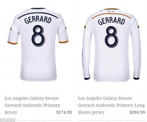 但球衣的售价着实不菲,目前俱乐部开放的提前预定价格为长袖球衣售价204.99美元(合134英镑)以及短袖球衣售价174.99美元(合114英镑),而目前2014-15赛季利物浦印有杰拉德名字的正品队服售价则相对便宜了很多,长袖售价42.5英镑以及短袖售价40英镑。无疑杰拉德新加盟银河队的球衣会非常火爆,并且为洛杉矶银河带来一笔不菲的收入。